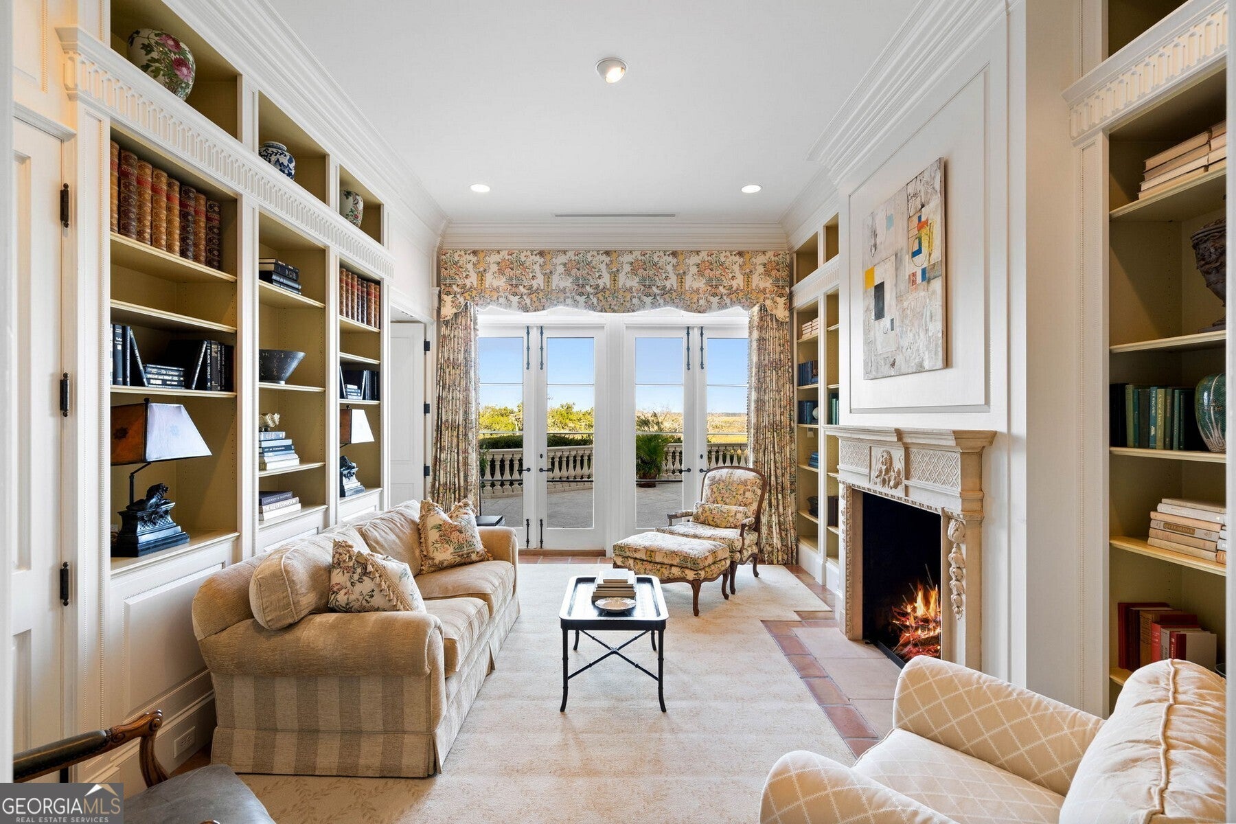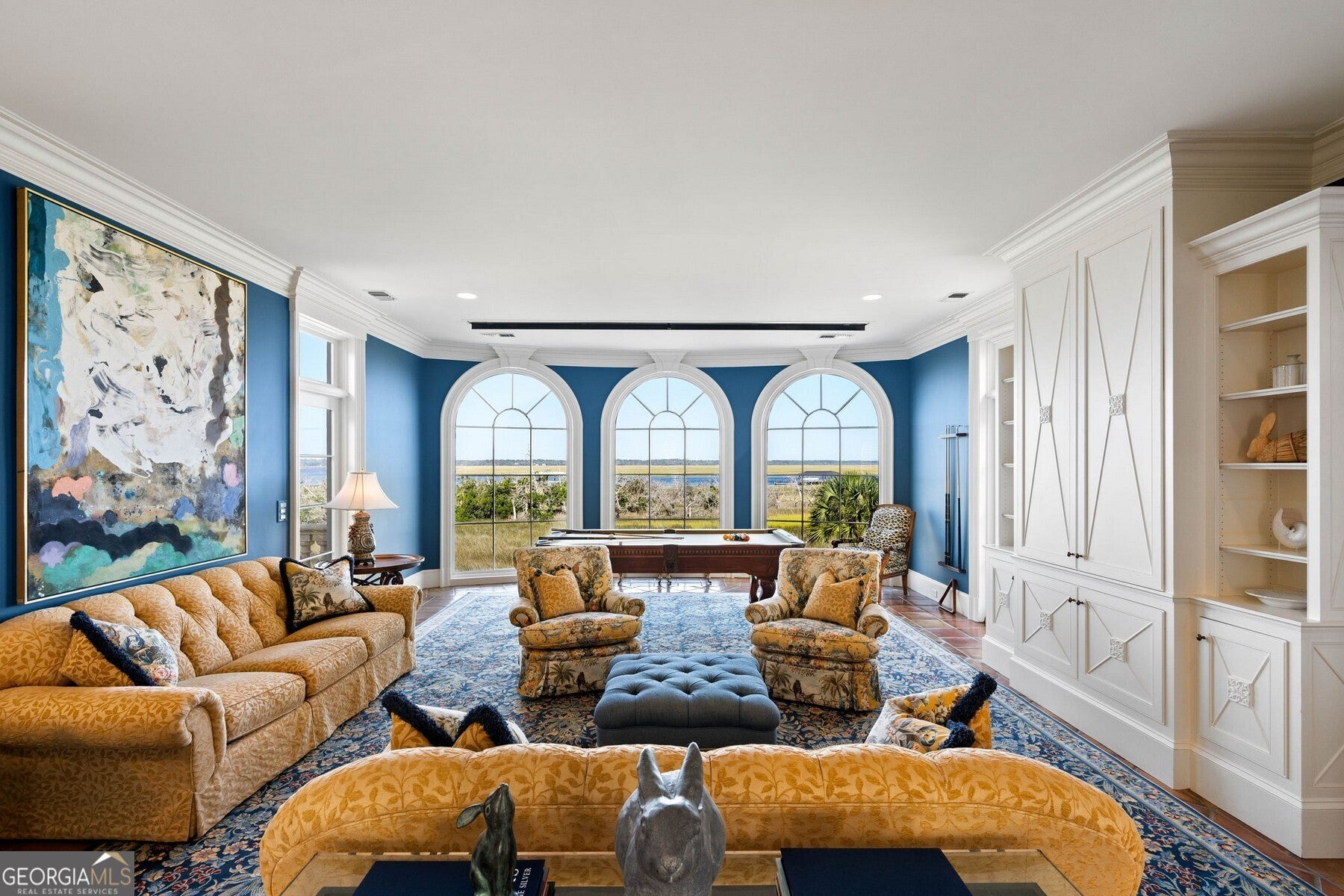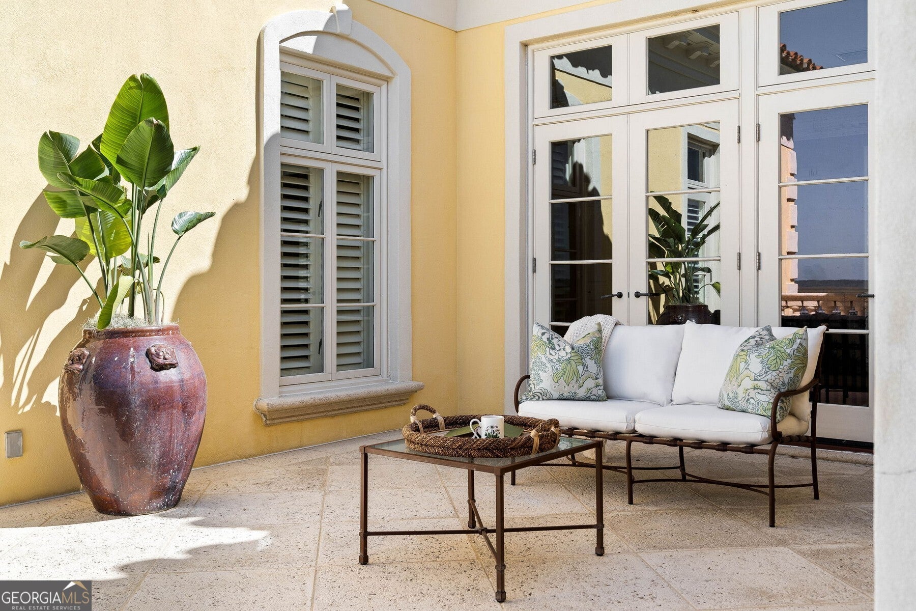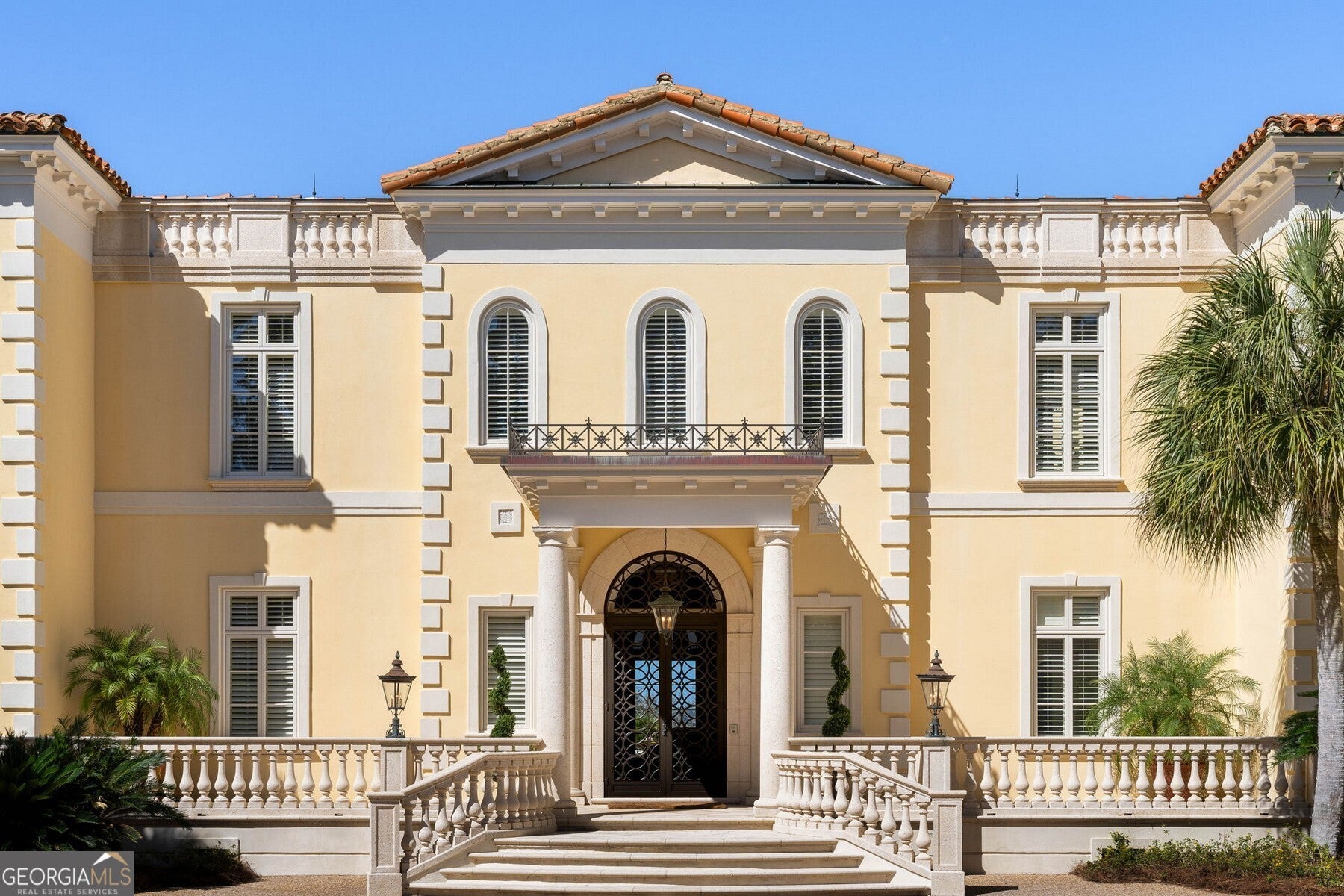 Dock approved. Located within a gated estate on the private island of Sea Island, secured by 24-hour security, "Villa Measured," Cottage 509 sits on an exceptionally private .86-acre deep-water homesite-one of the largest and most secluded marsh and riverfront parcels on the island. Long, uninterrupted water views unfold in multiple directions, while the estate's setting and natural buffers create a level of privacy that is increasingly difficult to replicate. The approved dock further enhances the property's lifestyle, offering direct access to the river while preserving the property's quiet, protected character. Designed with intention and restraint, Villa Measured achieves a rare balance-architecturally significant yet comfortably livable, substantial without excess. Inspired by the Musee Rodin in Paris, this Neoclassical residence was constructed on 35-50-foot pilings with load-bearing masonry walls, Ludowici terracotta roof tiles, precast concrete floor panels, stone balusters, and Medici yellow stucco. An aggregate stone and concrete drive leads to the residence and its three-car garage, reinforcing both arrival and functionality. Inside, a terra-cotta tiled foyer framed by limestone columns creates a direct sightline through the home to the marsh and river beyond. Twelve-foot ceilings, Ron Batton custom millwork, copper detailing, and full lightning protection reflect the depth of craftsmanship throughout. Living spaces flow seamlessly indoors and out. Upper and lower loggias overlook a vanishing-edge pool and spa, offering multiple vantage points to enjoy the surrounding landscape. Formal living and dining rooms open to a great room connected to the kitchen and vaulted breakfast room, creating a layout that supports both everyday living and entertaining. Four fireplaces-three interior and one wood-burning fireplace in the loggia-anchor gathering spaces, while two custom fire sculptures by London artist Cathy Burkman add warmth, light, and subtle movement. The south primary wing provides privacy within the home, featuring a dedicated study, dual dressing rooms, an exercise room, and double doors opening to a limestone terrace overlooking the marsh. The second level includes five bedrooms and two limestone terraces separated by the Marsh Room, along with approximately 1,100 square feet of additional guest accommodations accessible from both the main and second floors. A tennis rebound court and a finished floor elevation of 161/2 feet complete the estate. With gated access, 24-hour security, a rare .86-acre deep-water setting, an approved dock, and a residence scaled for elegant daily living, Villa Measured stands among the most private and thoughtfully proportioned estates on Sea Island.